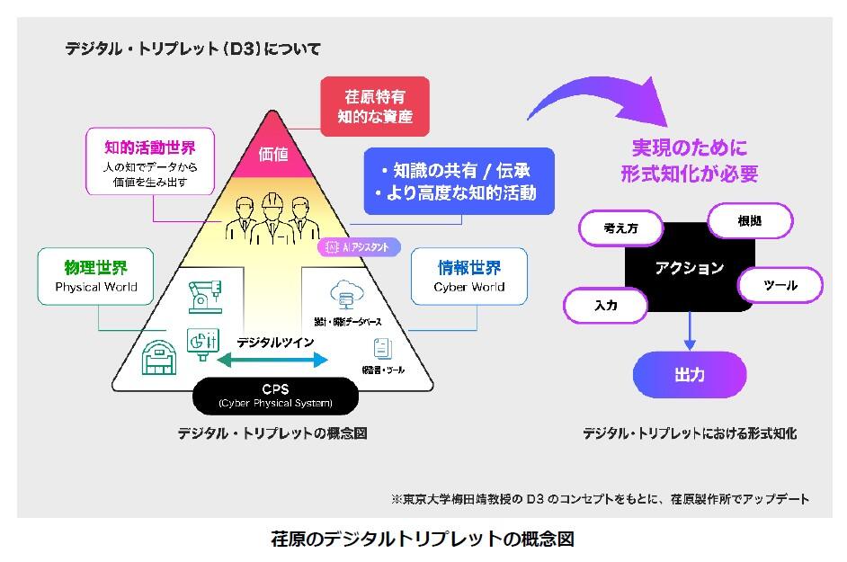 その中核となるのが、東京大学の梅田靖教授が提唱する「デジタルトリプレット(D3)」という概念です 。 従来の「デジタルツイン」が物理空間とデジタル空間の2層構造であるのに対し、デジタルトリプレットはそこに「知識空間(形式知)」を加えた3層構造を持っています 。これにより、現場の暗黙知をデジタルに繋げ、AIが自律的に推論・継承する人間中心のDXを実現します。